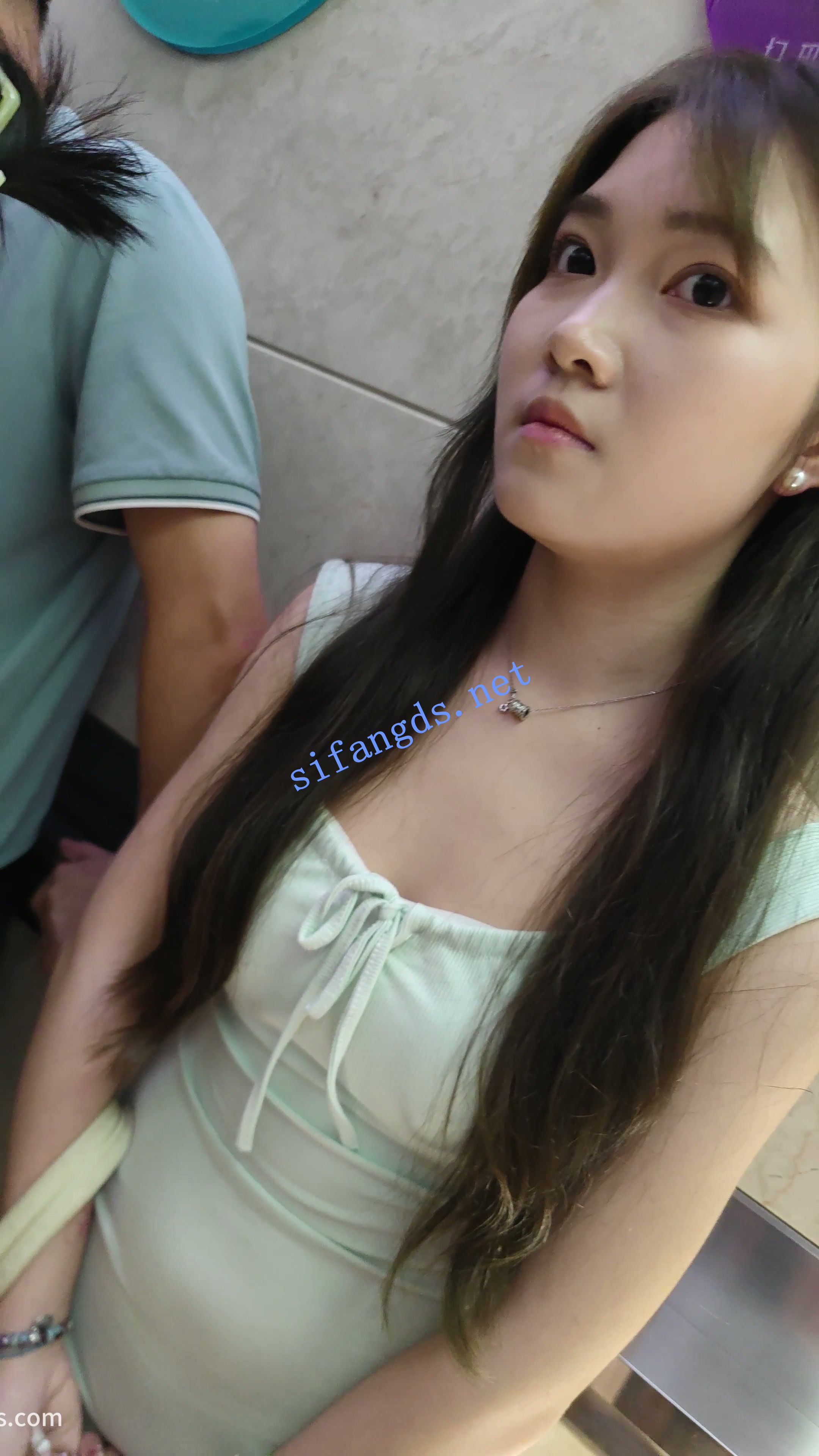 【CSCD】绿色包臀裙美女和家人吃饭,前后抄底粉色内内