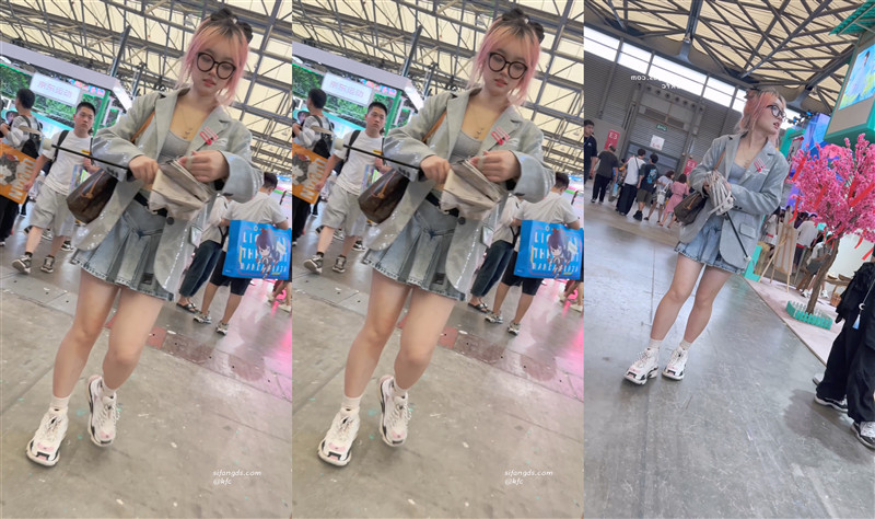 【KFC】丰满眼镜妹独自逛展❤️短裙白色薄内裆布有点发黄